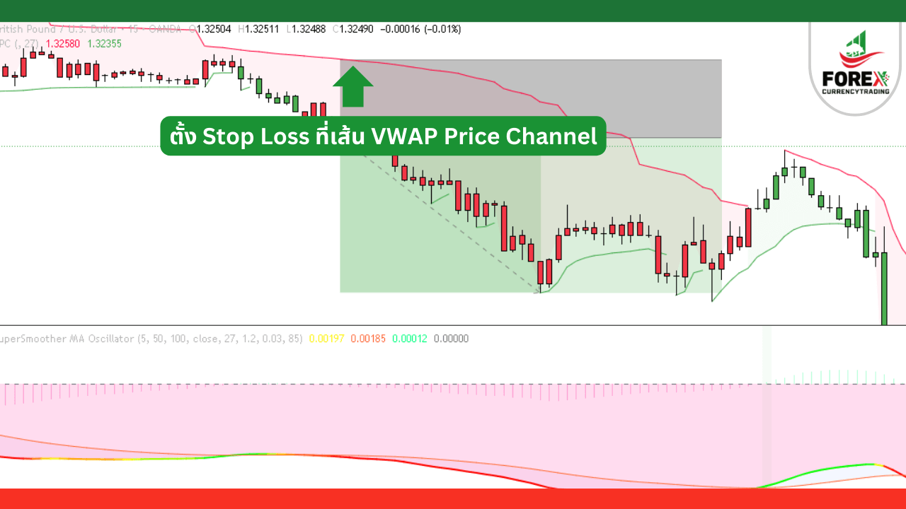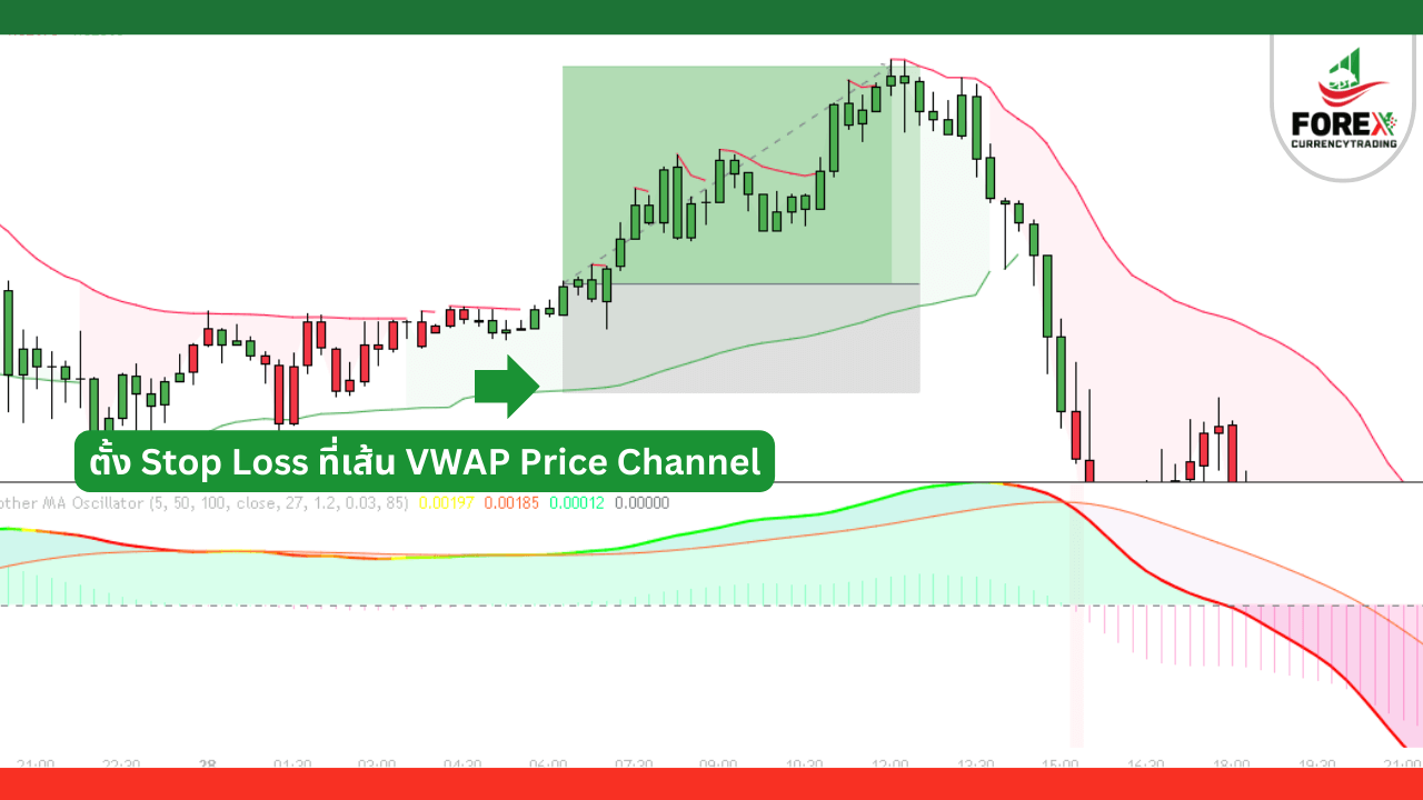 5. ตั้ง Stop Loss ไว้ที่เหนือเส้น VWAP Price Channel ระยะยาว
