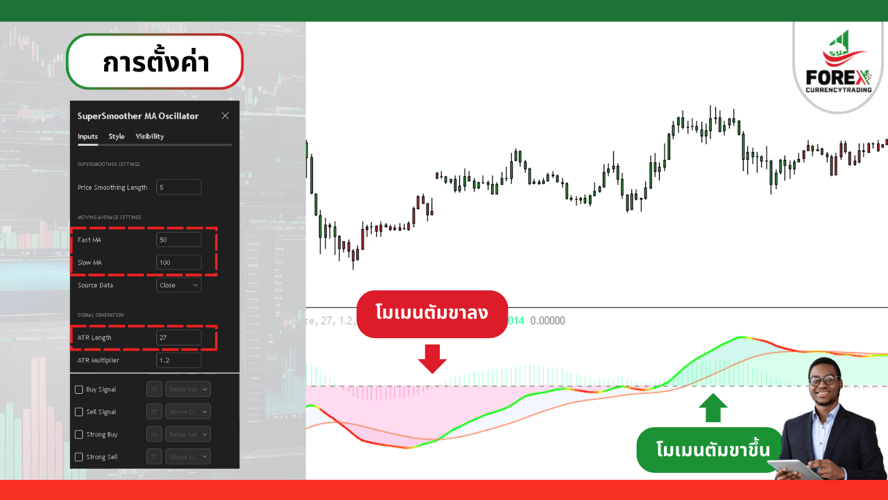 ภาพการตั้งค่าและอธิบายการใช้งาน SuperSmoother MA Oscillator เบื้องต้น