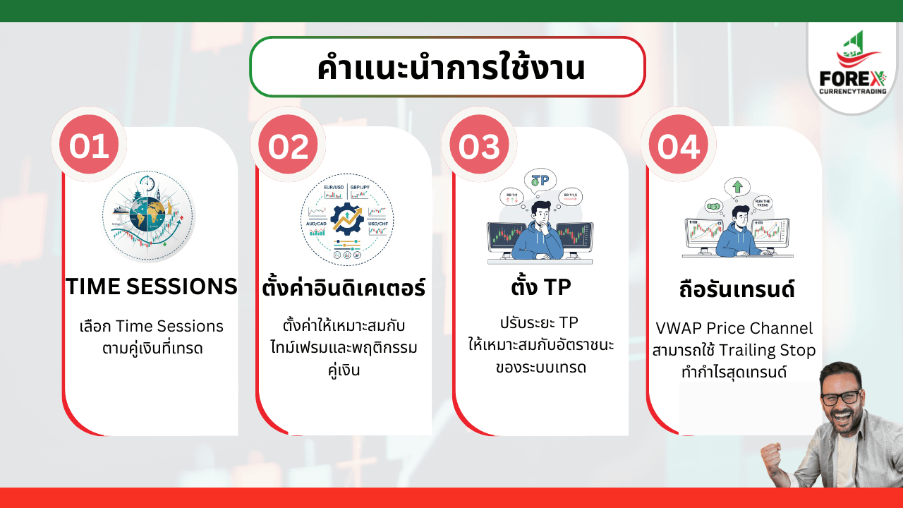 ภาพการตั้งค่าและอธิบายการใช้งาน VWAP Price Channel เบื้องต้น
